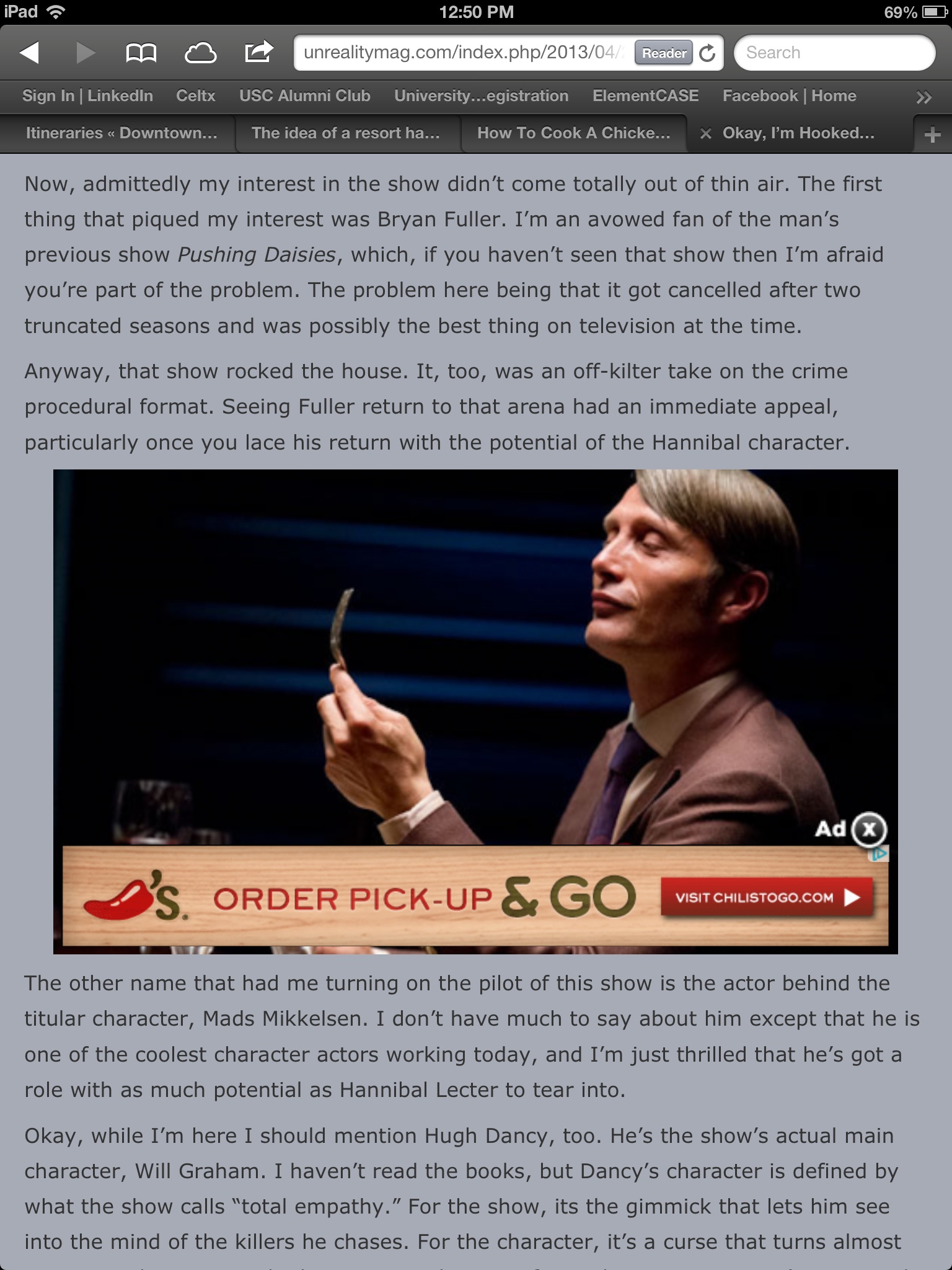 A Matter of Taste by Steve April 23, 2013 Random Stuff Bryan Fuller, Hannibal, TV, Unreality Mag Leave a comment I was reading an online review of HANNIBAL, when the following media confluence occurred: Gimme my baby back baby back baby back … Sometimes the world is a beautiful place. Share this: Click to share on X (Opens in new window) X Click to share on Facebook (Opens in new window) Facebook Click to email a link to a friend (Opens in new window) Email Click to print (Opens in new window) Print Like Loading... Related Leave a comment Cancel reply Δ